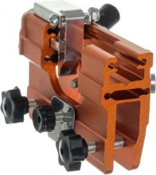 A felszerelés közvetlenül a vezetőlemezre történik – a lánc leszerelése nélkül. A masszív rögzítés és az ergonomikus kar minimálisra csökkenti a vibrációt és a megcsúszás kockázatát. Az anodizált alumíniumból készült, acél kötőelemekkel megerősített, strapabíró konstrukció műhelyben és erdőben egyaránt készen áll a megterhelő használatra.