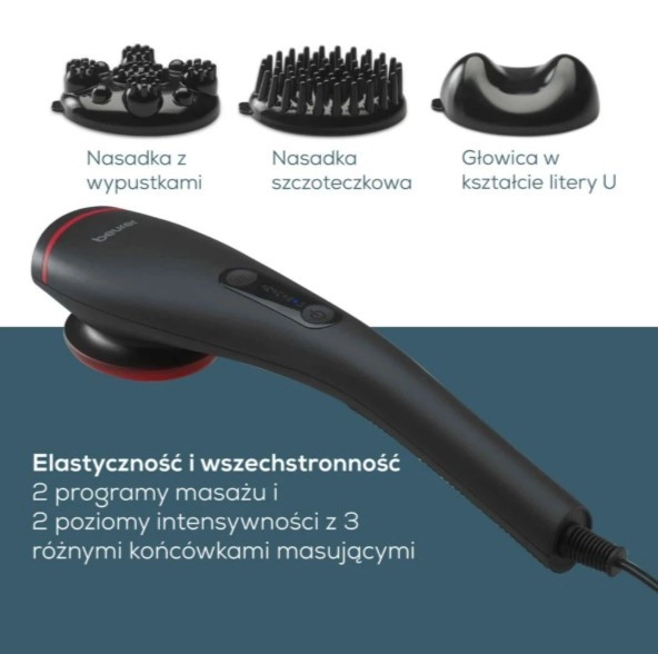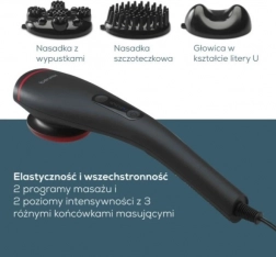 A masszázst igényeihez igazíthatja 3 cserélhető feltét, 2 masszázsprogram és 2 intenzitási szint segítségével. Az aktuális beállításokról színes LED visszajelző tájékoztat, míg a csúszásmentes markolat biztonságos fogást biztosít használat közben.