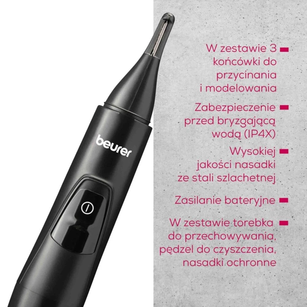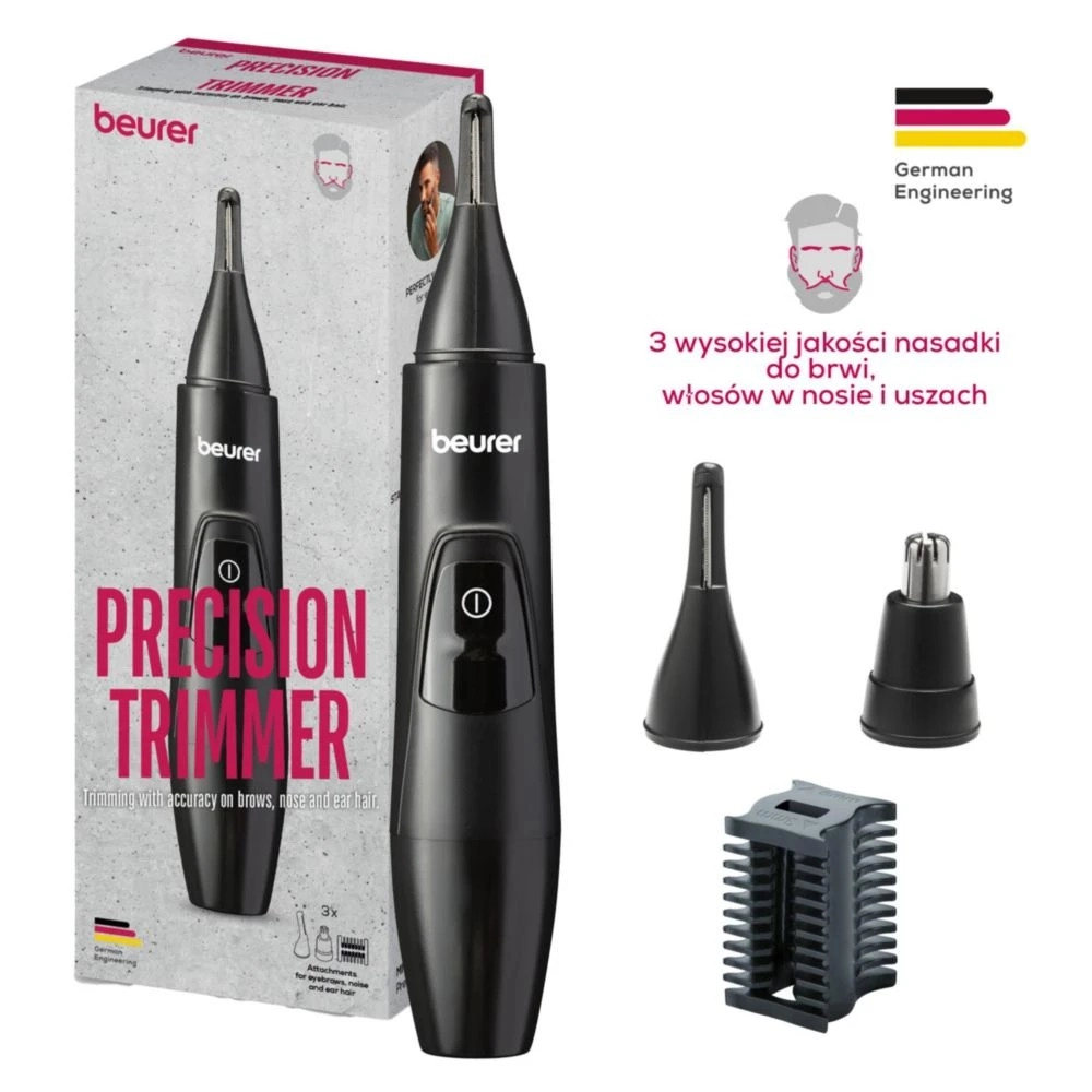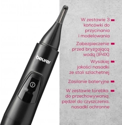 A Beurer MN2X trimmelő segít tökéletesen ápolt szemöldököt tartani, és biztonságosan eltávolítani a nem kívánt szőrszálakat az orrból és a fülből. A minőségi rozsdamentes acél fejeknek köszönhetően az ápolás kíméletes, higiénikus és hatékony. A készülék fröccsenő víz ellen védett (IPX4), így könnyű tisztán tartani.