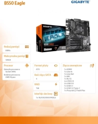A B550 EAGLE alaplap AMD AM4 foglalathoz Ryzen 5000/4000/3000 processzor-kompatibilitást, megbízható 10+3+1 digitális VRM-et, négy DDR4 foglalatot AMD EXPO támogatással, valamint két M.2 csatlakozót kínál villámgyors tárhelyhez, köztük PCIe 4.0-val. Nem hiányzik a PCIe gyorskioldást biztosító EZ-Latch, a fejlett VRM Thermal Armor hűtés és a modern csatlakozók: HDMI, DisplayPort és GbE LAN.