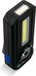 A két független világítási mód a legtöbb helyzetet lefedi: pontfény a nagyobb hatótávért és széles COB fény az egyenletes munkavilágításért. A rugalmas rögzítést mágnes és kampós klipsz biztosítja, így könnyen felerősíthető fém felületekre vagy felakasztható a kényelmes, kéz nélküli munkához.