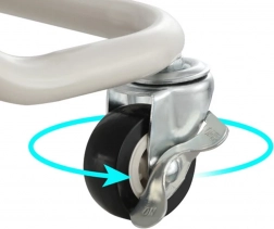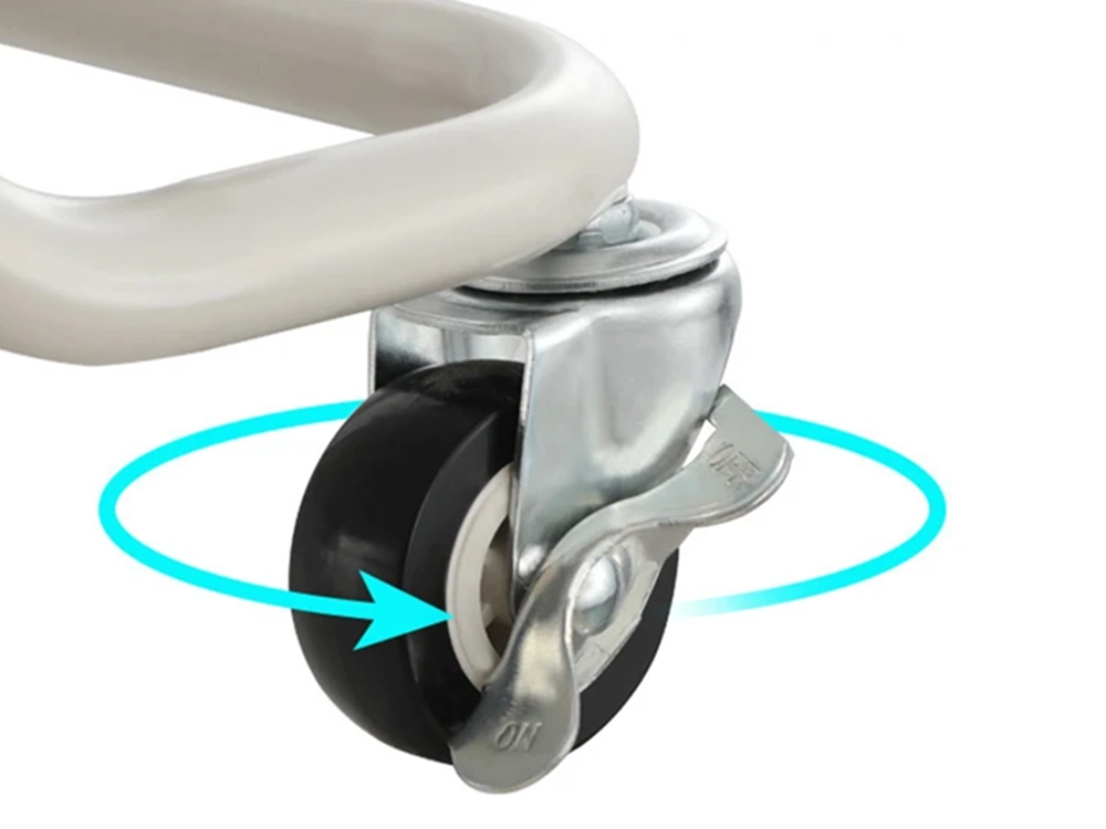 Négy forgó kerék és a praktikus fogantyú lehetővé teszi az állvány könnyed áthelyezését az egész otthonban. A beépített fék stabil pozíciót biztosít használat közben.