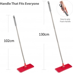 A könnyű, állítható nyél megkönnyíti a nagy felületek és a magas ablakok tisztítását. Az ultralapos fej forgatható csuklóval precíz takarítást biztosít a kanapé, szekrények alatt és a bútorlábak körül. A készlet 2 db csere mikroszálas huzatot tartalmaz a hosszú élettartam és a higiénikus használat érdekében.