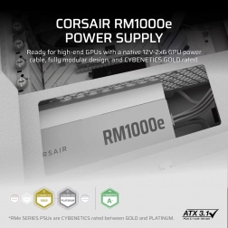 A Corsair RM1000e White teljesen moduláris tápegység 1000 W stabil teljesítményt, halk működést és csúcskategóriás hatékonyságot kínál Cybenetics Gold minősítéssel. Készen áll a modern konfigurációkra a ATX 3.1, PCIe 5.1 és a mellékelt, legújabb videokártyákhoz tervezett 12V-2x6 kábel akár 600 W-ig révén. A kompakt kialakítás és a teljesen moduláris kábelezés megkönnyíti a tiszta szerelést és a tökéletes légáramlást.