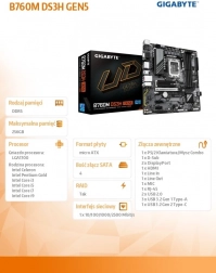 A Gigabyte B760M DS3H GEN5 alaplap LGA1700 foglalathoz kínál PCIe 5.0-t, gyors 2.5GbE LAN-t, 4 DDR5 foglalatot XMP támogatással, két M.2 PCIe 4.0 csatlakozót villámgyors SSD-khez, valamint modern csatlakozást USB‑C 10 Gb/s, DisplayPort, HDMI és D‑Sub formában. A tartós Ultra Durable kialakítás, a hibrid 6+2+1 VRM, az okos hűtés Smart Fan 6 és a Q‑Flash Plus funkció (BIOS frissítés CPU nélkül) stabil teljesítményt és egyszerű építést biztosít.