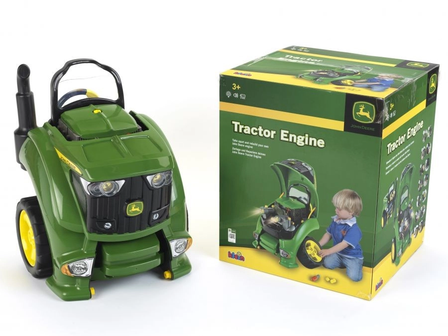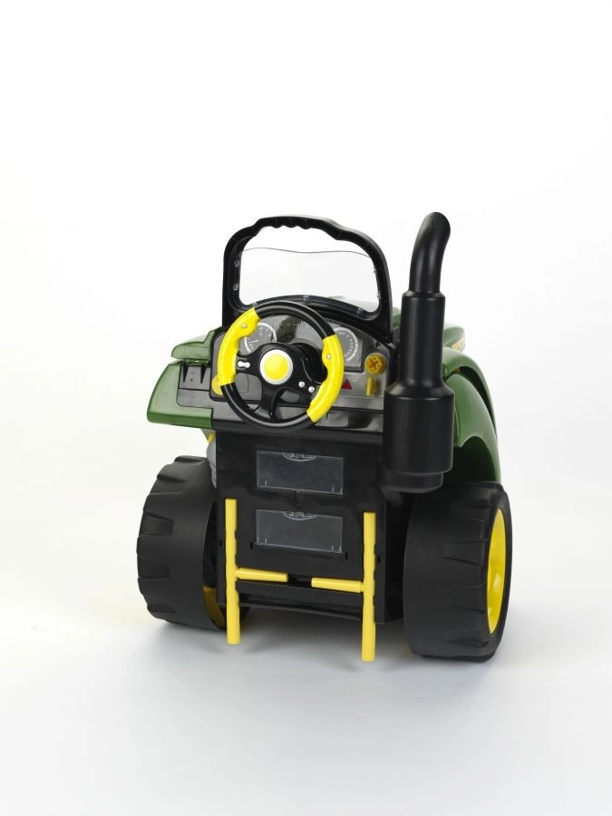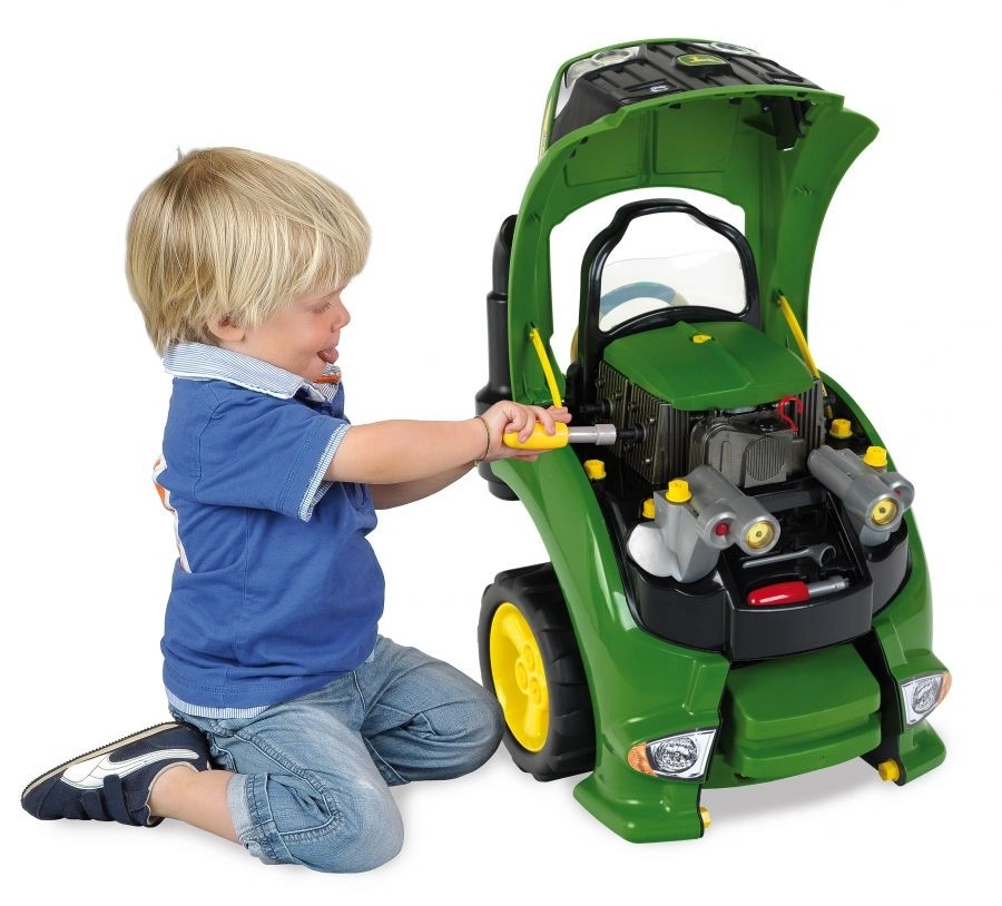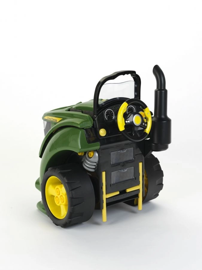 Ez a részletgazdag, a traktor JOHN DEERE elejét mintázó modell ötvözi az ülős kismotorozást az építőjátékkal. A motorháztető felnyitása után a gyerekeket gazdagon felszerelt motortér várja csavarokkal, burkolatokkal és szétszerelhető elemekkel. A motor és a duda fényei, hangjai fokozzák a valósághű játékélményt.