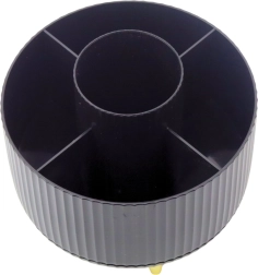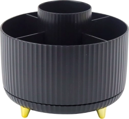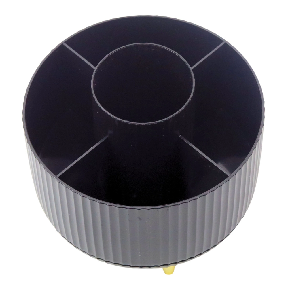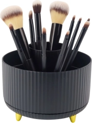 Tarts rendet a sminkjeid között ezzel a kompakt rendezővel, amely finoman, 360°-ban forog, és azonnali hozzáférést ad minden tárolt holmihoz. A nyitott kialakítás nem korlátozza a magasságot, így a hosszabb ecsetek és ceruzák is kényelmesen elférnek. A minimalista, fekete megjelenés otthonra és professzionális szalonba is illik.