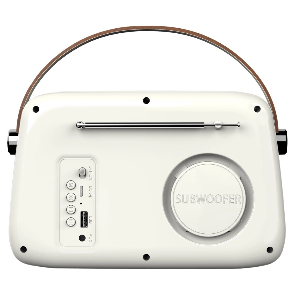 A kompakt, hordozható retro stílusú rádió FM vételt 87,5–108 MHz tartományban, modern Bluetooth 5.3 technológiát vezeték nélküli streameléshez, 3,5 mm-es AUX bemenetet és akkumulátoros tápellátást kínál USB‑C-n keresztüli töltéssel. A teleszkópos antennának köszönhetően stabil a jel, a tiszta, hangos hangzás pedig otthonra és utazáshoz egyaránt ideális.