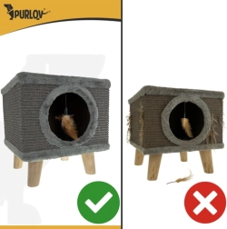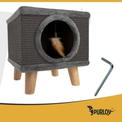 Kompakt és modern megoldást keres a macskájának? A PURLOV macskaház otthonos menedéket biztosít puha belsővel, miközben strapabíró kaparófaként is szolgál a természetes szizál oldalakkal. A masszív fa lábakon álló, megemelt kialakítás stabilitást nyújt még vadabb játék közben is, a csúszásgátló végzárók pedig óvják a padlót.