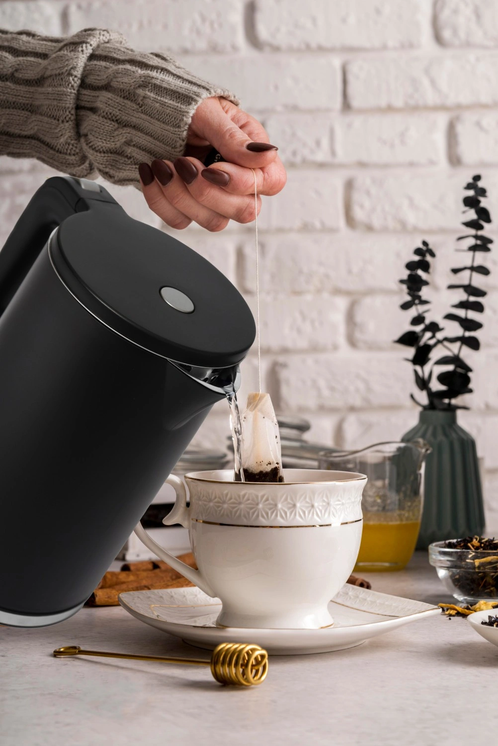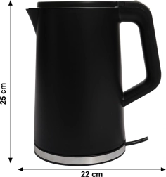 Élvezze a gyors és kényelmes vízmelegítést bárhol – nyaralóban, irodában vagy kis konyhában. Az 1500 W teljesítmény gyors forralást biztosít, a modern fekete kivitel jól illik bármely enteriőrbe, a kétrétegű köpeny pedig jobban szigetel és kellemes tapintású.