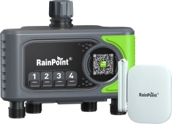A RAINPOINT okos vezérlő Wi‑Fi átjáróval akár négy független öntözési zónát kezel, ideális nagyobb kertekhez. A nagy teljesítményű antennák stabil jelet biztosítanak akár 150 m‑ig nyílt terepen, így bárhonnan kényelmesen ütemezheti és vezérelheti az öntözést. Válasszon a 3 módból (normál, szünet, ciklus és áztatás) és az 5 gyakoriságból (naponta, páratlan napok, páros napok, intervallum, egyéni naptár), hogy pontosan a növények igényeihez igazítsa az öntözést.
