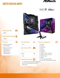 Az ASROCK X870 NOVA WIFI alaplap AM5 foglalathoz csúcs teljesítményt nyújt játékosoknak és alkotóknak: 20+2+1 fázisú VRM Smart Power Stage-zel, DDR5 XMP/EXPO támogatással, masszív alumínium hűtőbordákkal és integrált Wi‑Fi-vel a stabil kapcsolatért. A továbbfejlesztett 20K 1000 µF kondenzátorok nagyobb megbízhatóságot, alacsonyabb feszültségingadozást és kifogástalan stabilitást biztosítanak túlhajtás mellett is.