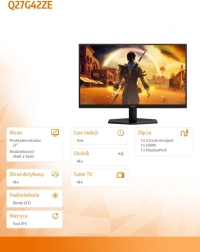 A Q27G42ZE monitort játékosoknak és igényes felhasználóknak tervezték, akik a maximális simaságot és a precíz színvisszaadást keresik. A Fast IPS technológia gyors átmeneteket és stabil színeket biztosít széles betekintési szögekkel, míg a 240 Hz-es frissítés minimalizálja az elmosódást és a szakadozást.