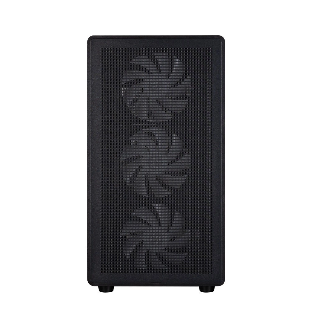 Az M5 Black mATX Mini Tower stílusos és funkcionális ház, amely ötvözi a remek légáramlást a látványos ARGB világítással. A négy darab 120 mm-es ARGB ventilátornak (3× elöl, 1× hátul) és a felül akár 360 mm-es radiátor támogatásának köszönhetően a nagy teljesítményű rendszerek hőmérséklete is stabil marad.