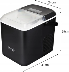 A kompakt IDEAL házi jégkészítő már 6 perc alatt kockákat készít, és naponta akár 12 kg jeget állít elő. 2 kockaméretet (S/L), önairányú légtelenítést és öntisztítást, csendes működést, valamint intuitív kezelőpanelt figyelmeztetésekkel kínál. Ideális otthonra, bulikra és irodába. A csomag tartalmazza a jégtartó kosarat és a lapátot is.