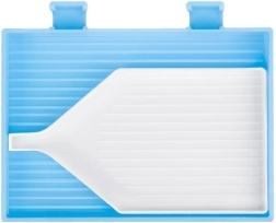 A rovátkolt tálcák kiöntőcsőrrel megkönnyítik a gyémántok átszitálását és a pontos visszaöntést a rekeszekbe szétszóródás nélkül.