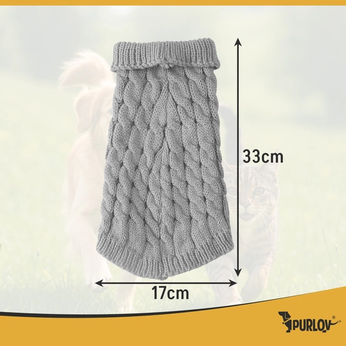 A meleg pulóver kutyák és macskák számára puha akril fonalból készült, amely kellemes tapintású és kíméletes a bőrhöz. A rugalmas anyagnak köszönhetően a pulóver alkalmazkodik az állat testalkatához, így nem szorít, nem dörzsöl és nem korlátozza a mozgást. Ideális választás olyan fajtáknak, mint a francia bulldog, kisebb beagle, tacskó, mopsz, jack russell terrier, törpe schnauzer, cavalier king charles spániel, valamint nagyobb európai macskáknak, fiatal maine coonoknak, brit rövidszőrűeknek vagy fiatal norvég erdei macskáknak.