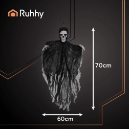 Alkoss hatásos halloweeni jelenetet pillanatok alatt. A fekete RUHHY függő csontváz élethű megjelenést, alacsony tömeget és egyszerű felakasztást akasztófüllel kínál. A tépett textil a légmozgásra lágyan hullámzik, fokozva a félelmetes hatást.
