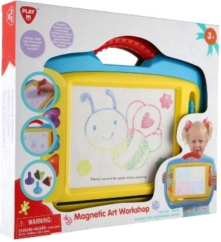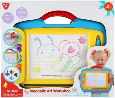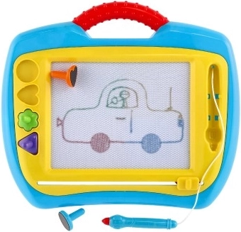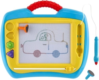 A mágneses tábla remek alternatíva a papír helyett – a gyerekek újra és újra rajzolhatnak, filctollak és foltok nélkül. A praktikus csúszkának/kocsinak köszönhetően a rajz könnyen törölhető, és a felület készen áll az új alkotásra. A tartós műanyag kialakítás fogantyúval megkönnyíti a hordozást.