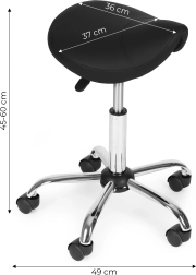 Ergonómia, amely egész nap kitart. A nyeregalakú ülés támogatja a természetes testtartást, a medence és a gerinc helyes pozícióját, és csökkenti a deréktáji feszültséget. A 4 cm vastag puha hab hosszú műszakok során is kényelmes ülést nyújt. A 360°-os forgó mechanizmus megkönnyíti a pozícióváltást felállás nélkül.