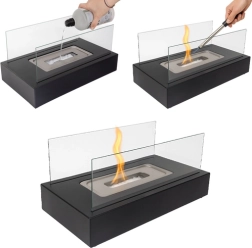 Élvezze a valódi tüzet korom, hamu és bonyolult telepítés nélkül. A KAMINER biokandalló elegáns fekete vázzal és loft stílusú üvegfalakkal bármely belső teret és teraszt otthonossá varázsol. A bioetanol tiszta égése nem termel füstöt vagy káros anyagokat, így ideális lakásba, irodába és hálószobába is.