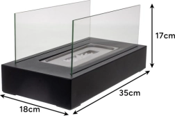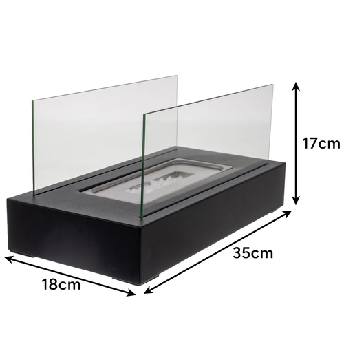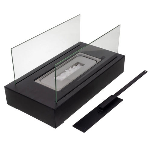 A stabil felépítés üveglángvédővel és acél tartállyal, nedvszívó kerámiaszállal meghosszabbítja az égést és növeli a biztonságot. A csomag tartalmaz oltófedelet/kikapcsolót is a könnyű eloltáshoz. Az alsó habpárnák megóvják a bútort a karcolásoktól.