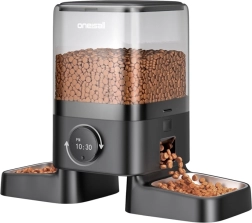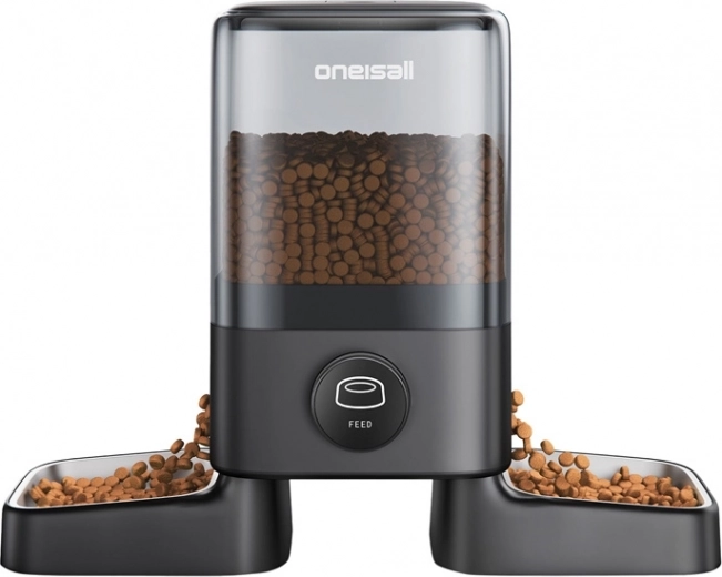 Az ONEISALL PF09 praktikus etetőadagoló, amelyet két házi kedvenc számára terveztek. A nagy 5 l-es kapacitás (kb. 2,3 kg száraztáp) körülbelül 10 napra elegendő 2 macskának, az átlátszó tartály megkönnyíti a szint ellenőrzését, a jól átgondolt, 40 cm távolságra lévő dupla tálak pedig csökkentik a stresszt és a versengést etetés közben.