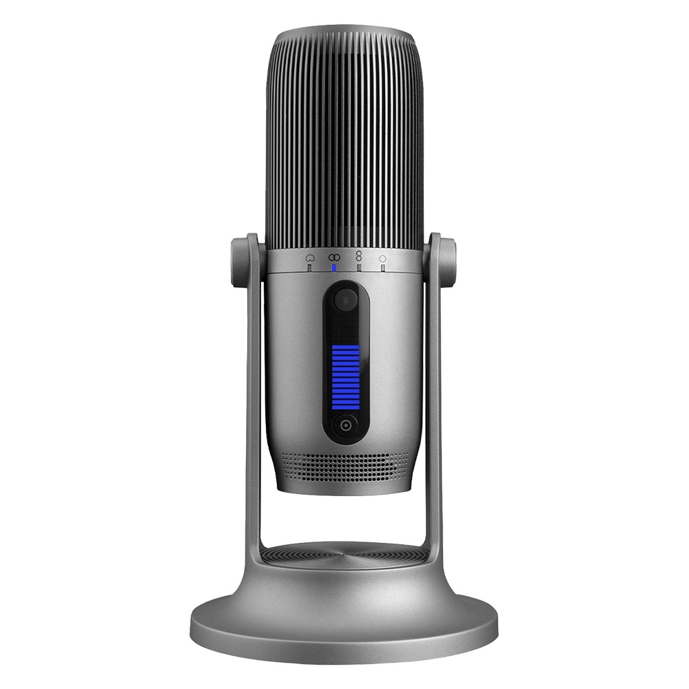A THRONMAX MDrill One sokoldalú asztali mikrofon tartalomkészítőknek, játékosoknak és professzionális hívásokhoz. A Vertigain technológia a hanghullámokat közvetlenül a három kondenzátorra irányítja, minimalizálva a szóródást, így hangos, tiszta és természetes felvételt biztosít 48 kHz / 16 bit minőségben. A LED jelzés segítségével könnyen ellenőrizhető a fejhallgató szintje és a mikrofon érzékenysége.