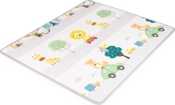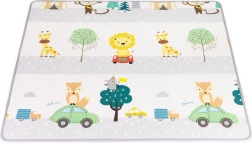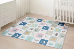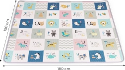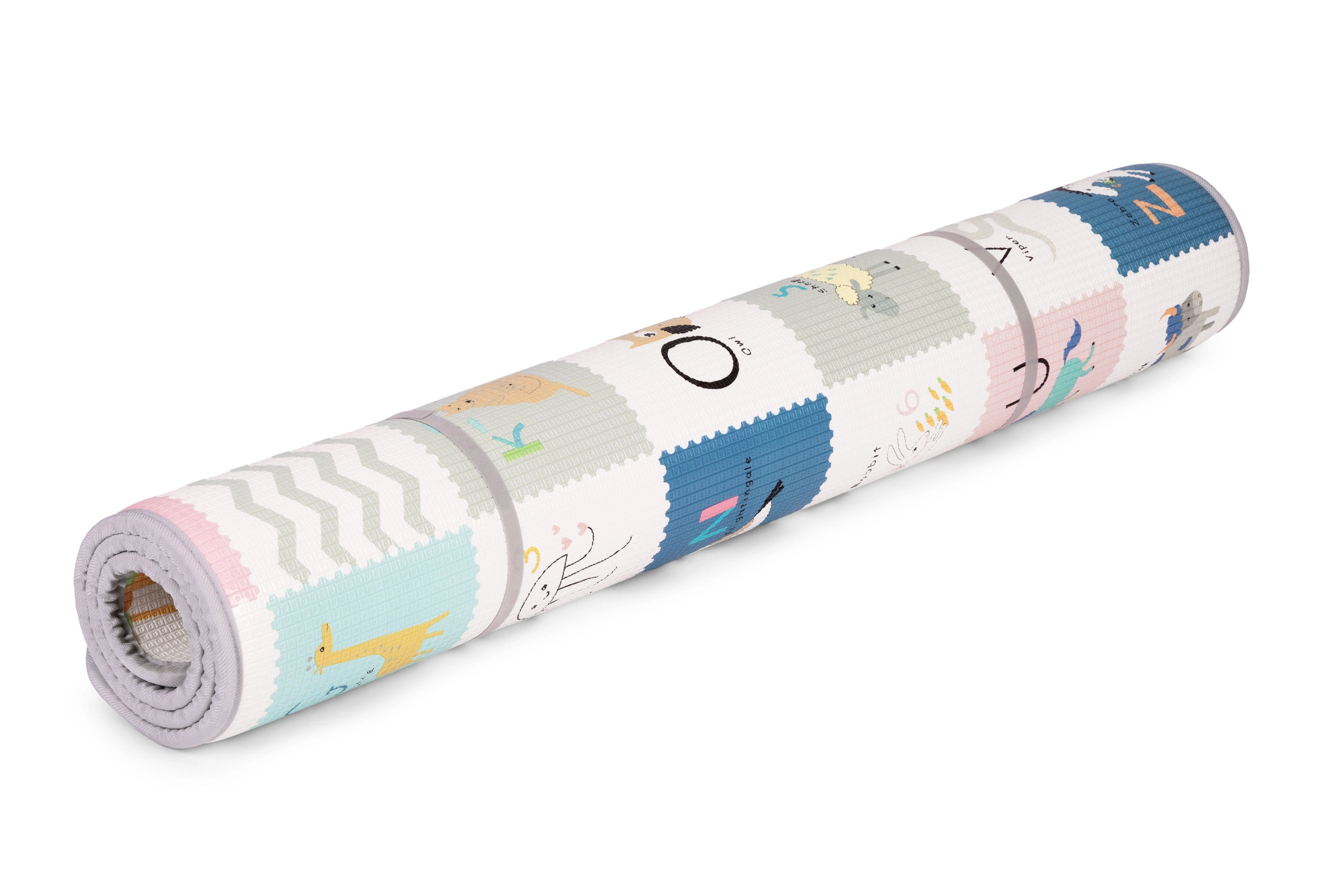 A kétoldalas minta ösztönzi a képzelőerőt és a tanulást: az egyik oldalon vidám ábécé képekkel és angol szavakkal, a másikon állatok, járművek és természet látható. A szőnyeget könnyedén feltekerheted, majd tépőzáras pántokkal rögzítheted – ideális a gyors elpakoláshoz és a szállításhoz a játszószobába, nagyszülőkhöz vagy nyaralásra.