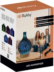A RUHHY 3 az 1-ben: légnedvesítő, aroma diffúzor és dekoratív LED lámpa. Az ultrahangos technológiának köszönhetően csendesen és hatékonyan működik, vízmelegítés nélkül – ideális hálószobába, nappaliba és irodába. A tükörhatású burkolat, a kompakt méret és a szilikon lábak stabilitást és stílust biztosítanak bármely enteriőrben.