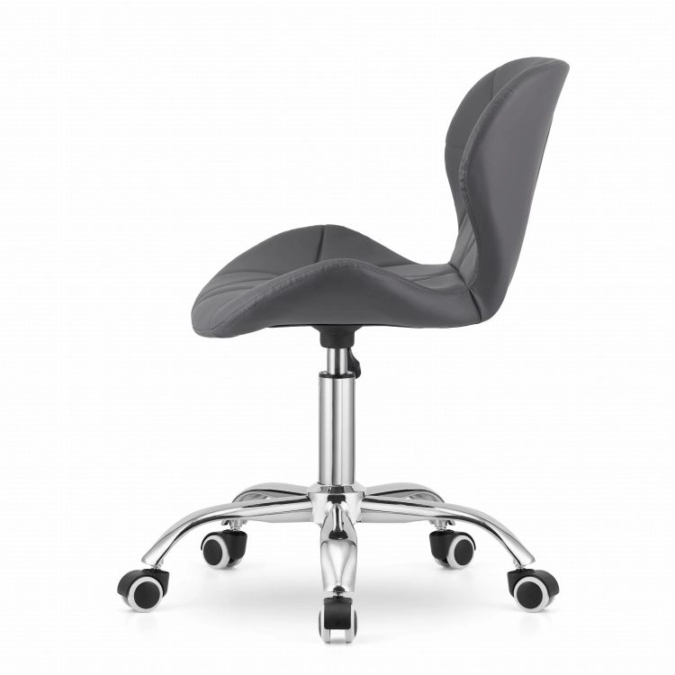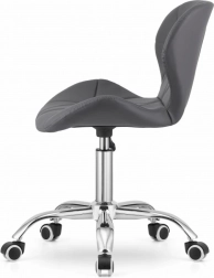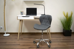 A stílusos AVOLA forgószék elegáns szürke színben modern dizájnt, széles, ergonomikus háttámlát és kényelmes ökobőr kárpitozást kínál. A stabil, krómozott, ötagyú csillagláb gumírozott kerekekkel biztosítja a sima mozgást és védi a padlót. Remek választás irodába, gyerekszobába, stúdióba és szépségszalonba is.