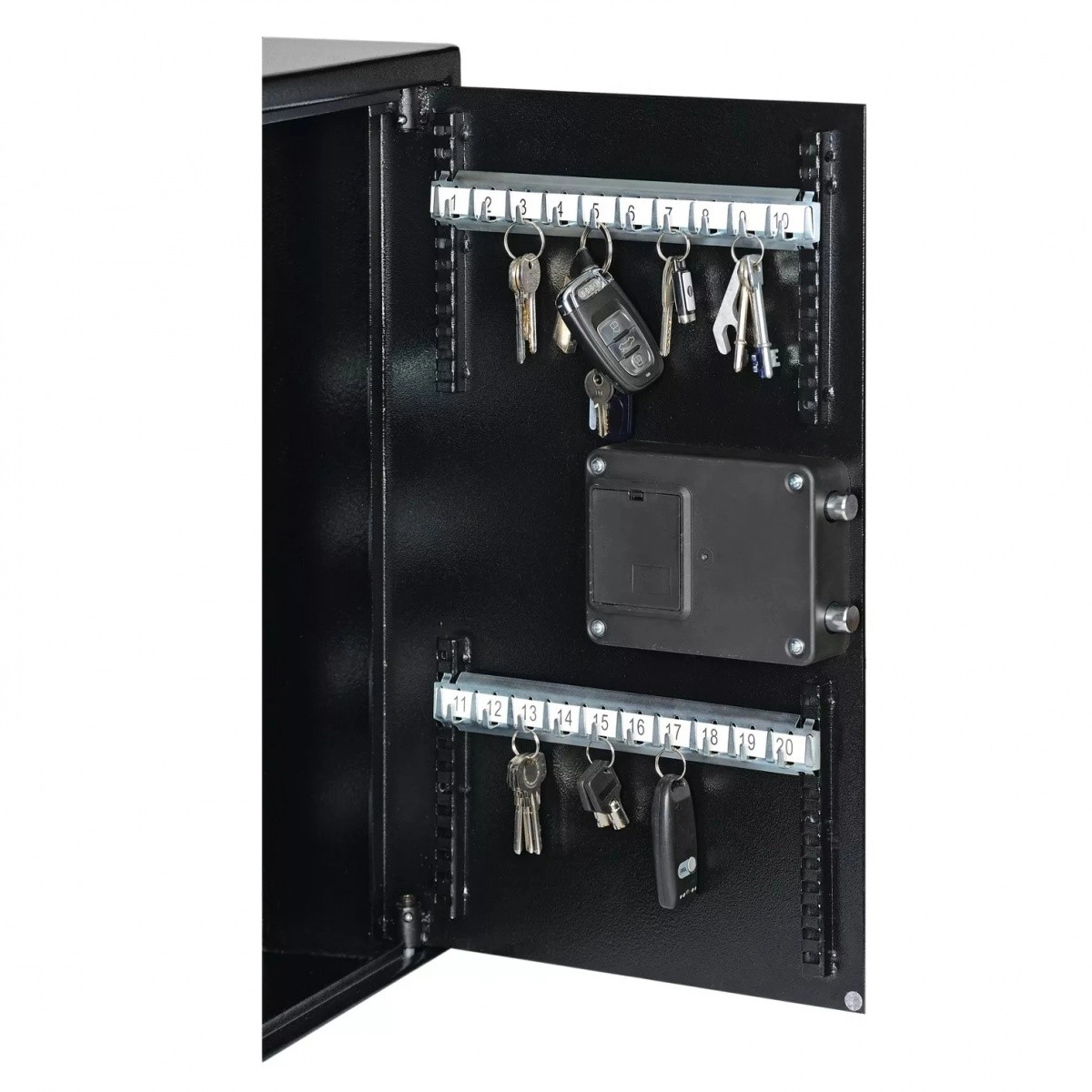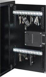 A belső tér 100 kulcs számára készült, állítható akasztókkal és praktikus jelölőrendszerrel, amely megkönnyíti a rendszerezést és a megfelelő kulcscsomó gyors megtalálását.