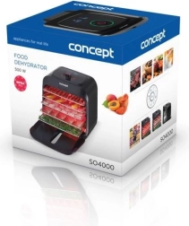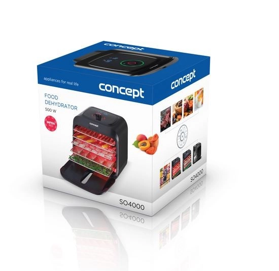 A modern SO4000 élelmiszer-szárító kíméletes INFRA szárítást infravörös hullámokkal kínál a vitaminok, enzimek és ásványi anyagok maximális megőrzéséért. Elérhető 5 program, beleértve a sterilizálást és a kézi módot 35–75 °C hőmérséklet-beállítással, akár 99 óráig. A csomag része a rozsdamentes kiegészítő, beleértve 5 tálcát és csepegtetőtálcát, amelyek mosogatógépben moshatók.