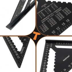 A megbízható BIGSTREN asztalos derékszög 30 × 30 cm méretben gyors és precíz jelölésre és mérésre készült. A 90° és 45° szögek, a cm- és hüvelykskálák, valamint a fogazott él kombinációjának köszönhetően könnyedén végezhet derékvágásokat és ferde vágásokat, méretátvitelt és élkiegyenlítést.