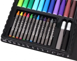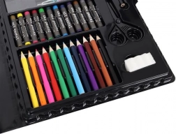A készlet összesen 86 darabot tartalmaz, köztük pasztellceruzákkal, filctollakkal, viasz- és olajpasztellel a korlátlan kreativitás érdekében.