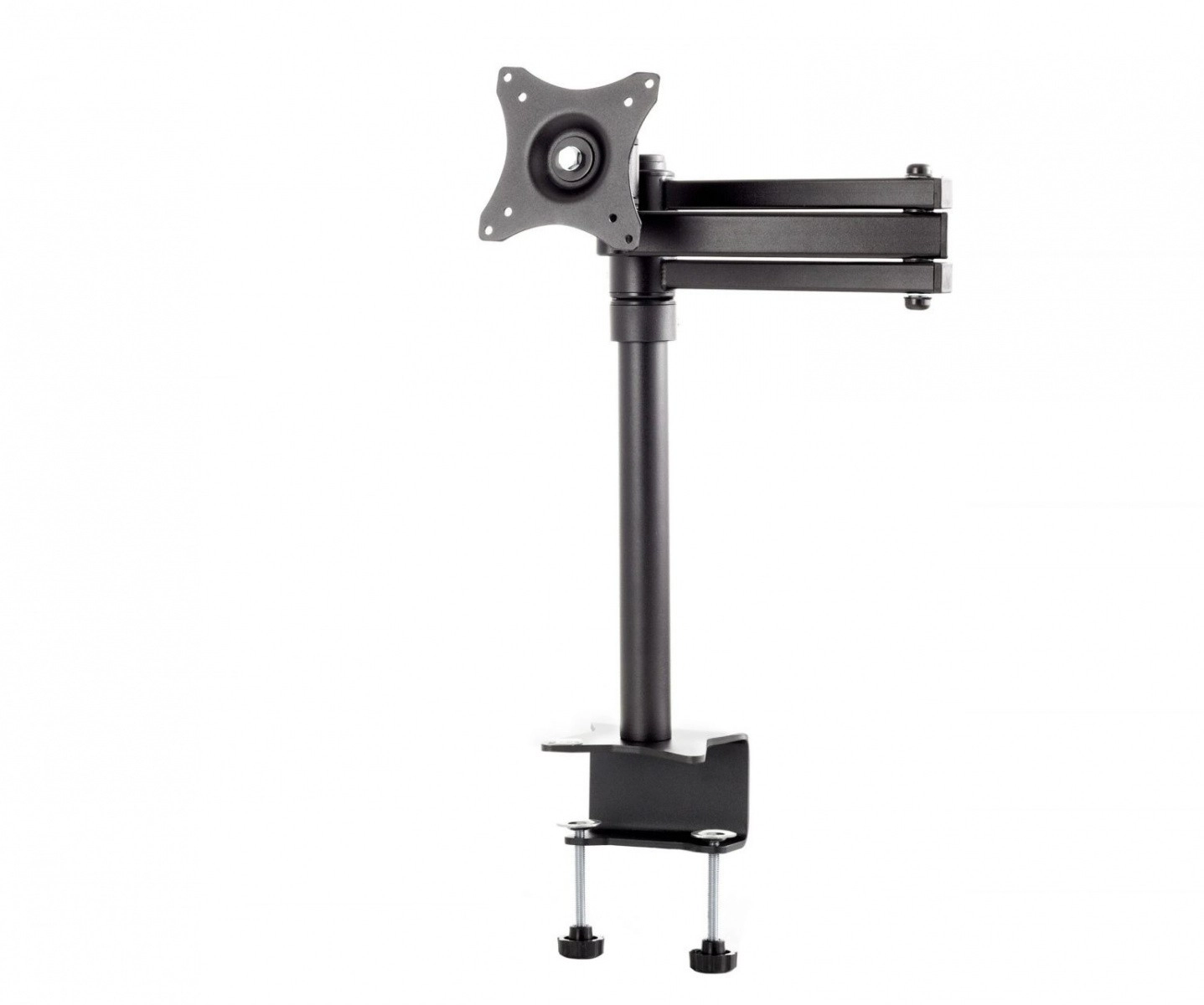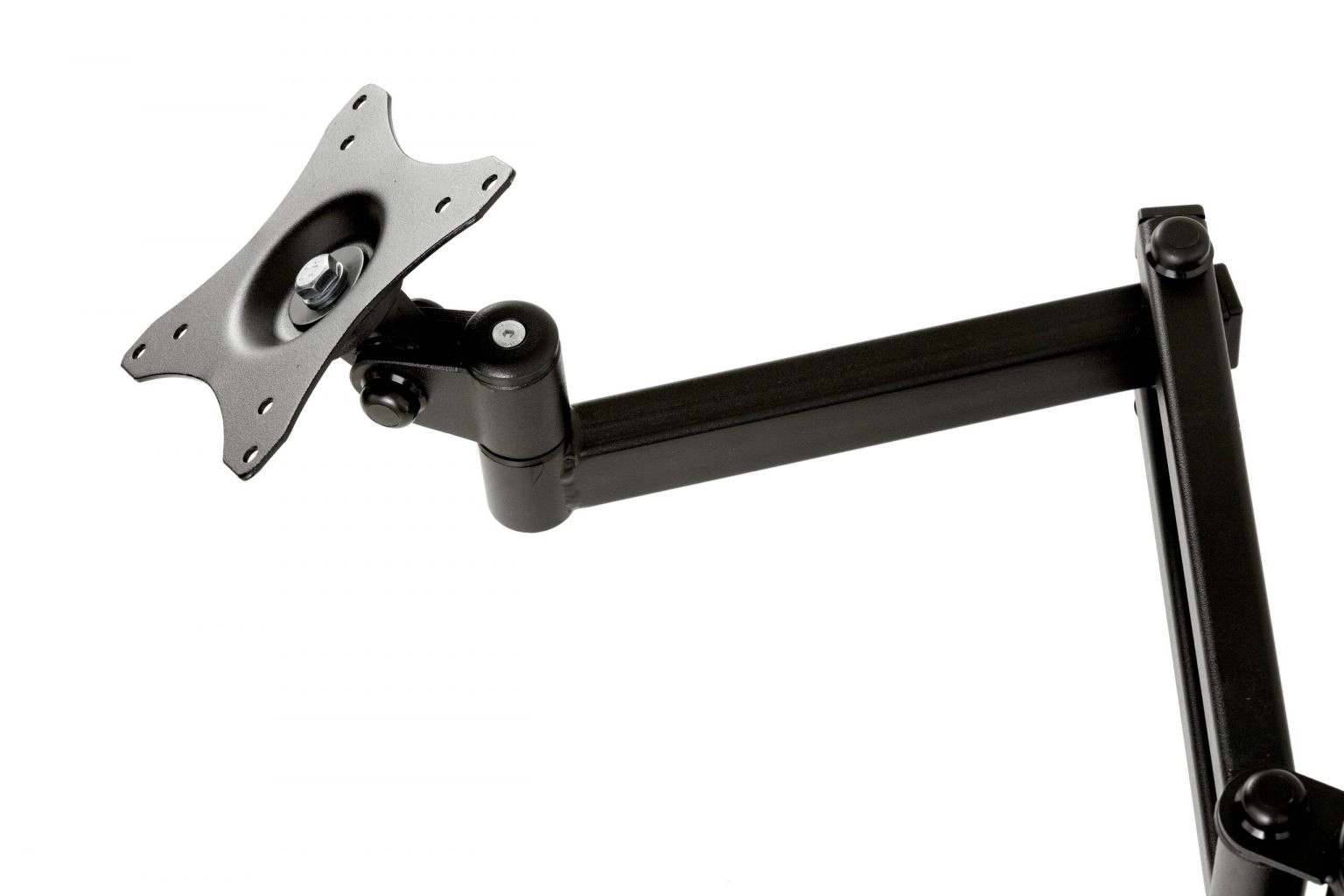 Ergonomikus, kettős karú asztali monitortartó 10–29"-os kijelzőkhöz, mely teljes magasságállítást, 360°-os forgatást és −50°/+50° dőlést kínál a kényelmes beállításhoz. A csomagban 2 féle asztali rögzítés és kábelrendező is található a tiszta, modern munkakörnyezetért.
