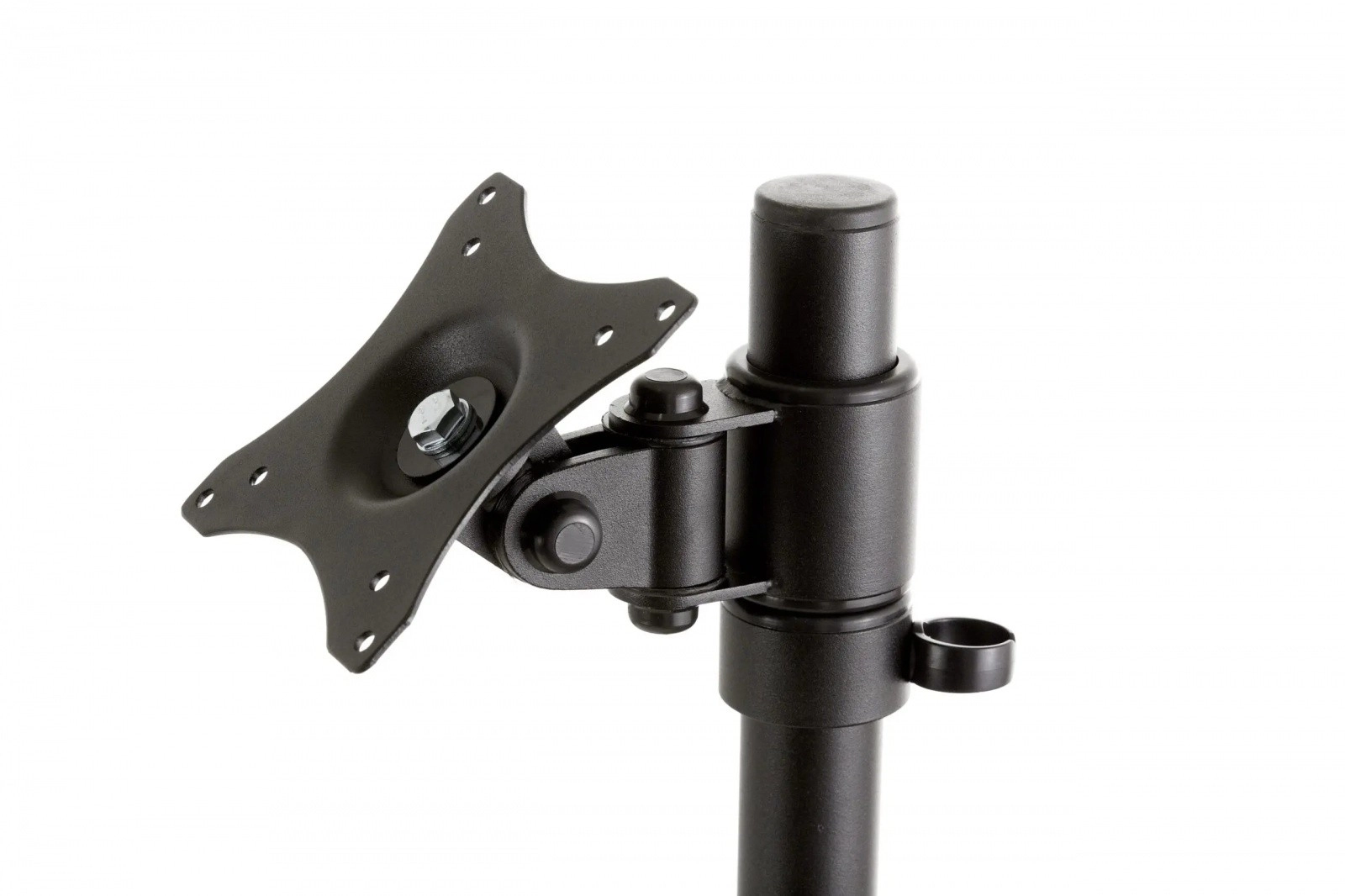 Az univerzális SV01 asztali monitorállvány 360°-os forgatást kínál fekvő és álló tájoláshoz, teljes magasság- és vízszintes beállítást, valamint kettős rögzítési lehetőséget – az asztallapon való átvezetésen keresztül vagy C-szorítóval az asztal szélére. A telepítés gyors és egyszerű, két lépésben elvégezhető.