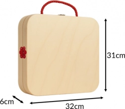 Minden alkatrész gondosan simára csiszolt, és nem mérgező festékkel színezett. A rétegelt lemezből készült bőrönd fémzárral és kötél fogantyúval átlátható tárolást és könnyű utazást biztosít. A készlet ideális ajándék fiúknak és lányoknak, és megfelel az európai szabványoknak.