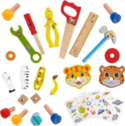 Fedezze fel a szórakoztató és fejlesztő KRUZZEL fa szerszámkészletet gyerekeknek praktikus bőröndben. A gyerekek állatokat, járműveket és robotokat építhetnek, miközben fejlődik a kreativitásuk, logikus gondolkodásuk és finommotorikájuk. A sima, biztonságos elemek és a masszív fából készült tok füllel rendet és könnyű hordozhatóságot biztosít.