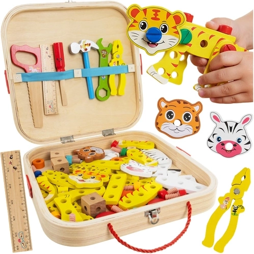 Ez a gazdag készlet a játékot és a tanulást egyesíti. A gyerekek fűrésszel, kalapáccsal, csavarhúzóval vagy fogóval csavarnak, összekapcsolnak és összeállítanak színes elemeket vidám állatokká és járművekké. Támogatja a koordinációt, a pontosságot és a térbeli képzelőerőt, miközben megismerteti az alapvető szerelési elveket.