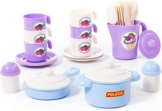 Gyerek teaszett Nastěnka ideális módon biztosít felejthetetlen játékot a kis szakácsoknak. A készlet 38 darabot tartalmaz, amelyek szórakozásra és biztonságos játékra vannak tervezve.