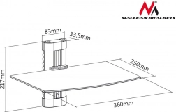 A Maclean MC-663 minőségi fali polc 5 mm vastag edzett üveggel, amely biztonságosan és kényelmesen tartja multimédiás eszközeit. Minimalista dizájnja fekete üveggel remekül illik a modern tévékhez és enteriőrökhöz.