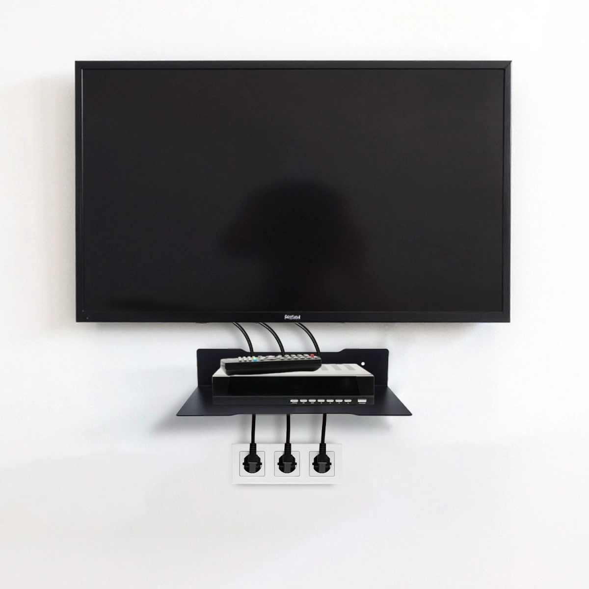 A porszórt acélból készült stabil konstrukció megbízhatóan elbír akár 5 kg-os eszközöket – a set‑top boxoktól és routerektől a kisebb konzolokig és hangszórókig. Otthoni nappaliba, dolgozószobába és kereskedelmi terekbe egyaránt alkalmas, ahol tiszta és funkcionális technikai telepítésre van szükség.