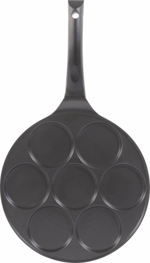 Fedezze fel a tökéletes palacsinták, racuchyk vagy tócsnik elkészítésének kényelmét. Ez a nagy teherbírású alumíniumból készült serpenyő 7 kerek mélyedést kínál az egyenletesen formázott adagokhoz és a biztos eredményhez bármely főzőlapon. A PFOA-mentes tapadásmentes felület minimalizálja a zsiradék szükségességét, és megkönnyíti a tálalást és a tisztítást.