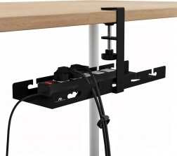 Az asztal alatti kábelrendező okos megoldás mindenkinek, aki tiszta és biztonságos kábelezést szeretne gubanc nélkül. A bilincses (C-clamp) rögzítésnek köszönhetően pillanatok alatt, fúrás nélkül az asztallap élére erősíthető. A beépített nyílások és átvezetők megkönnyítik a vezetékek rendezését és a sín/hosszabbító elhelyezését közvetlenül az asztallap alatt.