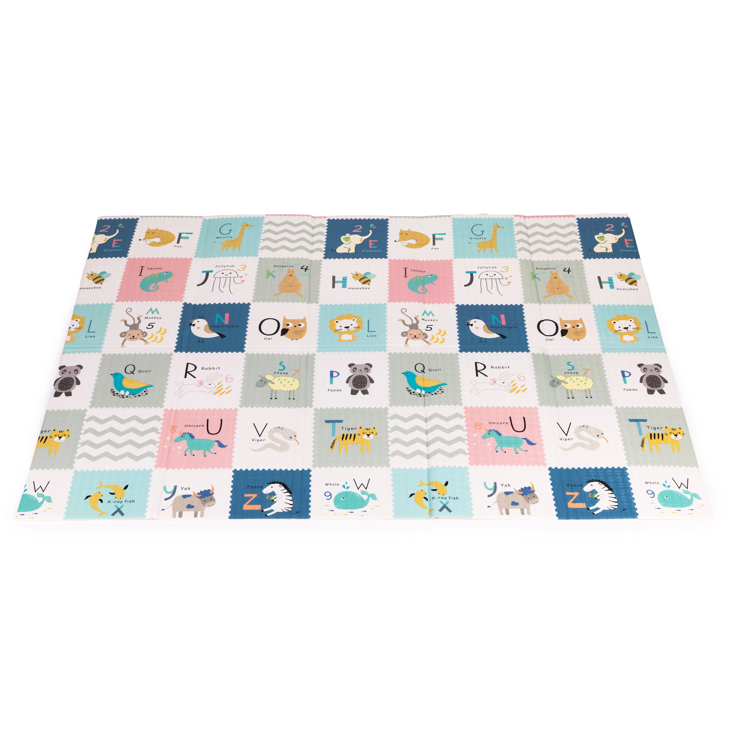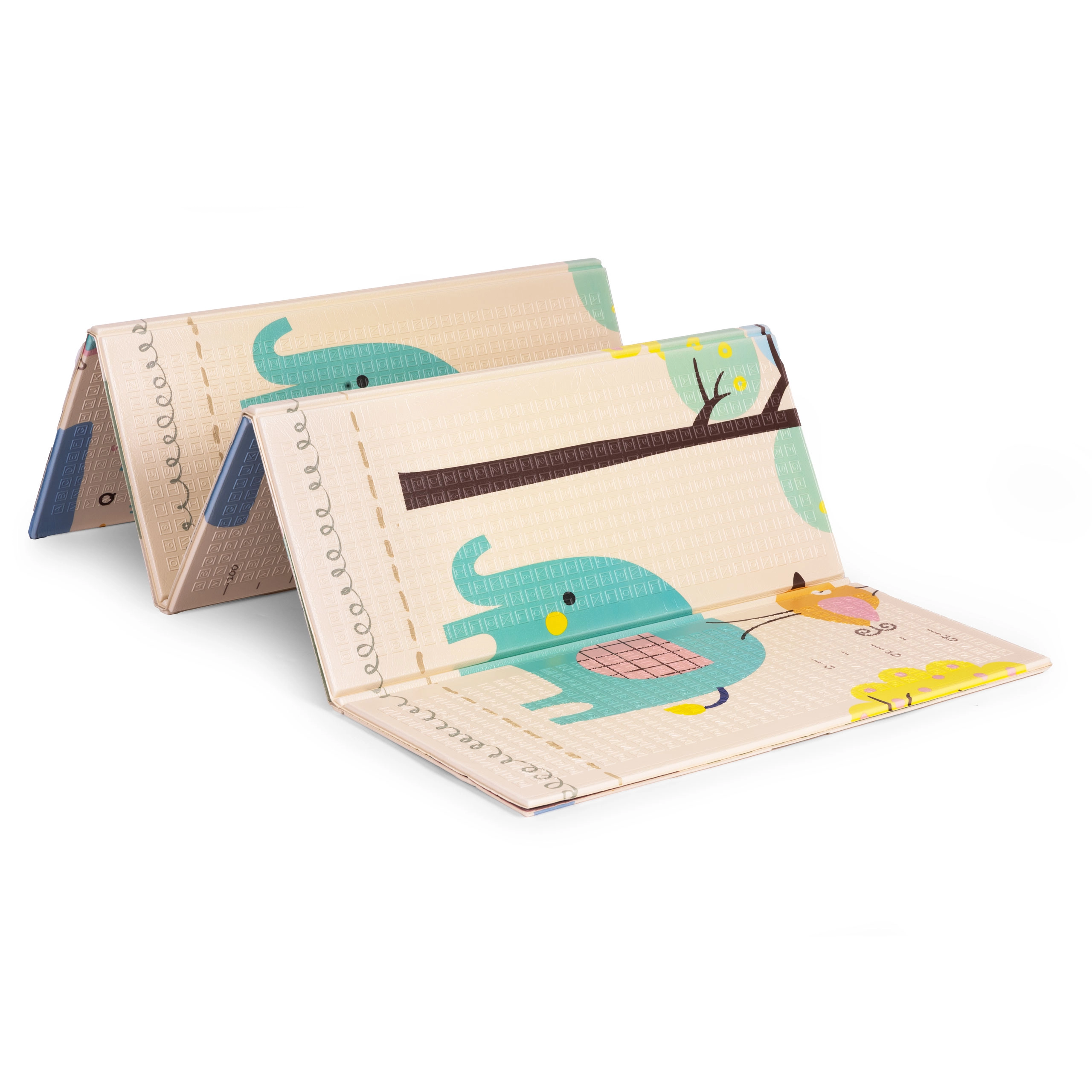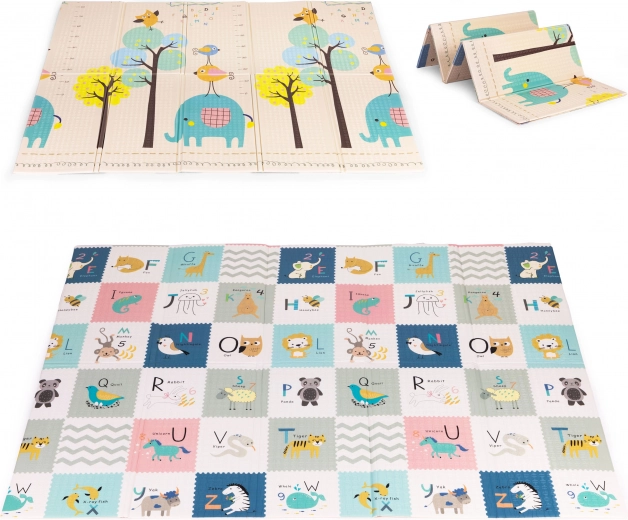 A szőnyeg összecsukható, könnyű és praktikus hordtáskában érkezik – ideális gyerekszobába, játszósarokba vagy utazáshoz nagyszülőkhöz és nyaralásra. A csúszásgátló textúra mindkét oldalon stabilitást ad kúszásnál és járásnál, a felület pedig könnyen tisztítható nedves ruhával.