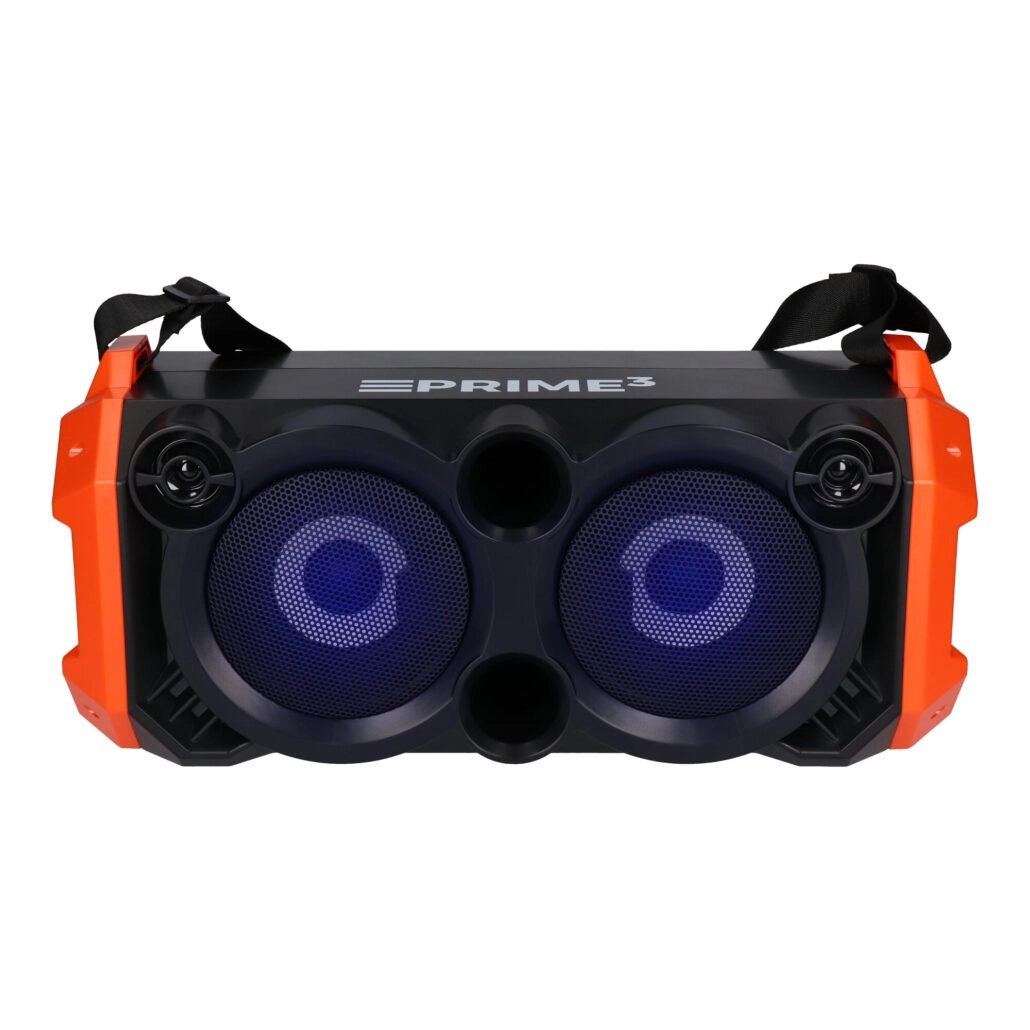 Élvezd kedvenc slágereidet bárhol a PRIME3 SLAM! APS31 hangszóróval. Kínál Bluetooth-ot, karaokét 6,5 mm-es mikrofonbemenettel, FM rádiót, lejátszást USB-ről és microSD-ről, valamint lenyűgöző hangot Bass Reflex-szel. A legfeljebb 5 órás üzemidőnek, ekvalizernek és LED háttérvilágításnak köszönhetően ideális bulikra, sporteseményekre és prezentációkra.