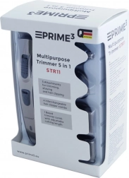 A PRIME3 STR11 ötvözi a precíz vágást, a sima borotválást és a részletes stylingot. A csomagban öt cserélhető fejet talál: haj- és szakállvágó, mini fóliás borotvafej, precíziós formázó fej, orr- és fülszőrnyíró, valamint szemöldökformázó fej. A hossz szabályozásához négy vezetőfésű (3/6/9/12 mm) és egy külön állítható szakállvezető 3–5 mm áll rendelkezésre.