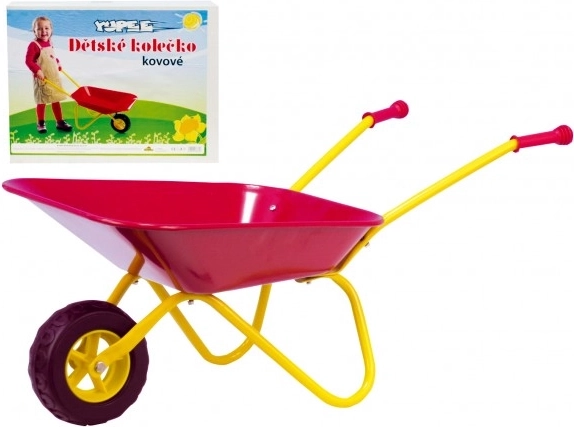 A Yupee masszív gyerek talicskája kis kertészeknek ideális homokozóhoz és kertbe. Erős, fémből készült vázzal, műanyag markolatokkal a kényelmes fogásért és lekerekített peremű ládával a biztonságosabb játékért.