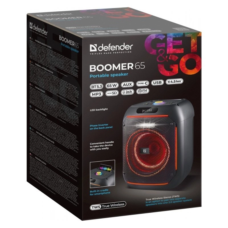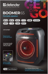 A BOOMER 65W egy nagy teljesítményű party hangszóró, amely erőteljes hangzást, praktikus funkciókat és látványos fényhatásokat egyesít. A Bluetooth 5.3 révén a zene akadozás nélkül, alacsony késleltetéssel szól, míg a beépített MP3 lejátszó és az FM rádió telefon nélkül is bővíti a zenehallgatási lehetőségeket.